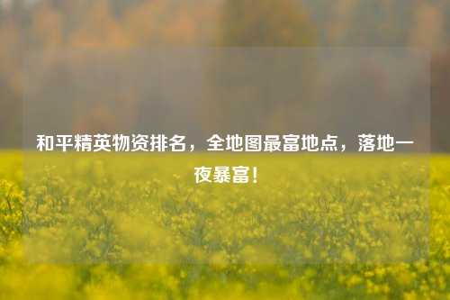 在《和平精英》的战场上,物资就是生命,一个肥得流油的开局往往意味着更高的吃鸡概率,我们就来盘点游戏中物资最丰富的顶级点位,助你落地三级套,轻松carry全场!